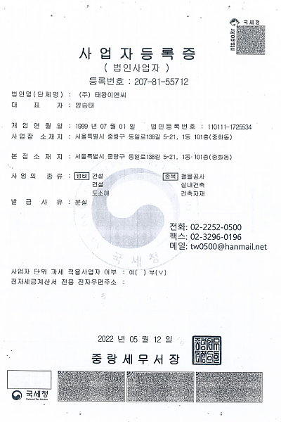 보유자격증 1 페이지 > (주)태왕이앤씨